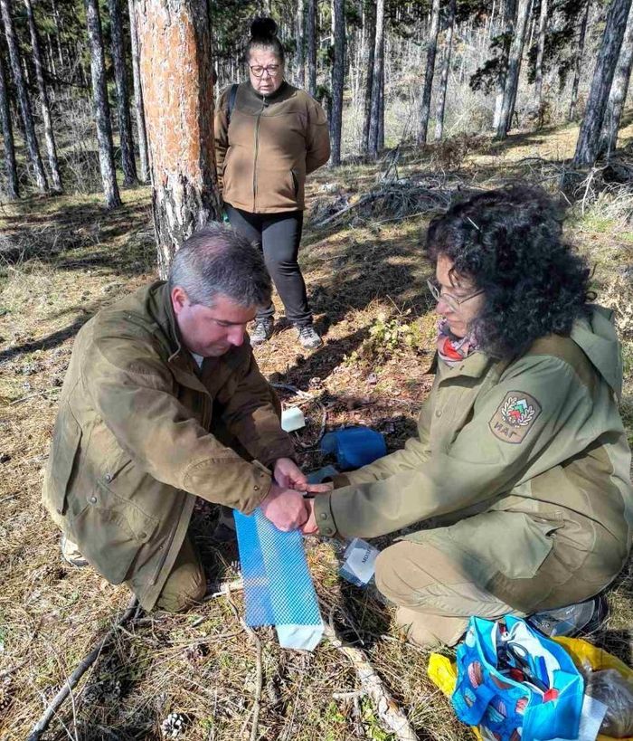 В практическата част на събитието беше показан метод за улавяне на слизащите гъсенични процесии чрез капани, поставяни около стъблата на борови дървета.